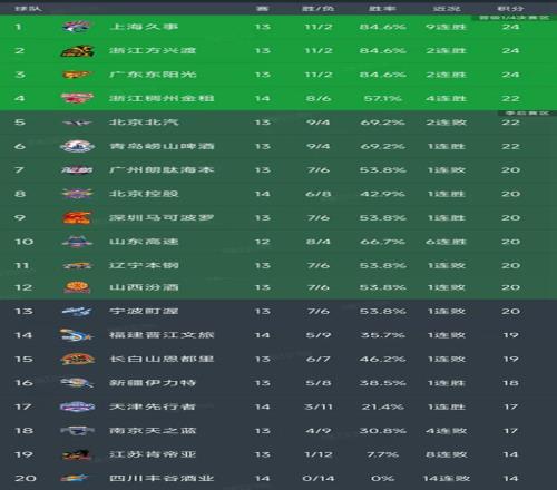 CBA第14輪結(jié)束了3場(chǎng)比賽,最新積分榜如下!