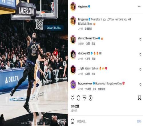 詹姆斯寫道:“無論你愛我還是恨我,你都會記住我?!?/p>