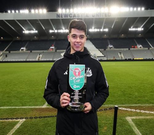 紐卡斯爾聯(lián)19歲小將劉易斯-米利憑借在英聯(lián)杯四分之一決賽中的關(guān)鍵發(fā)揮,當選本輪最佳球員。